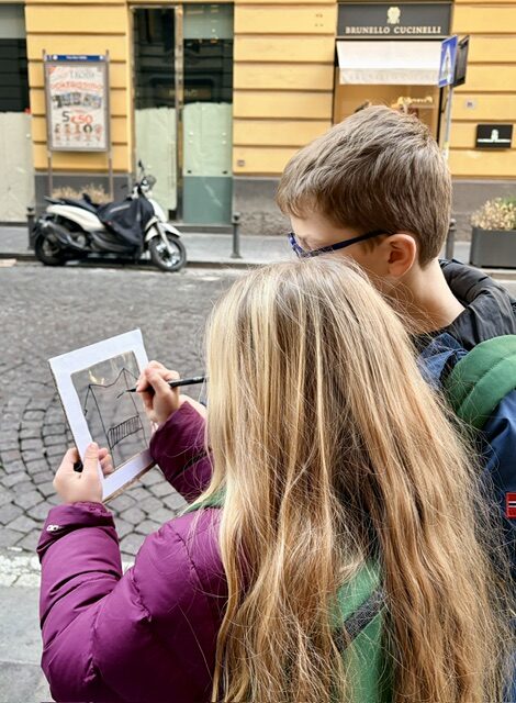 Durante la passeggiata, gli alunni hanno imparato ad osservare con attenzione edifici, palazzi e monumenti, soffermandosi sulle forme, sui dettagli e sui materiali. Hanno inoltre sperimentato un’attività pratica e sensoriale realizzando impronte dei materiali, per scoprirne le texture e le superfici.