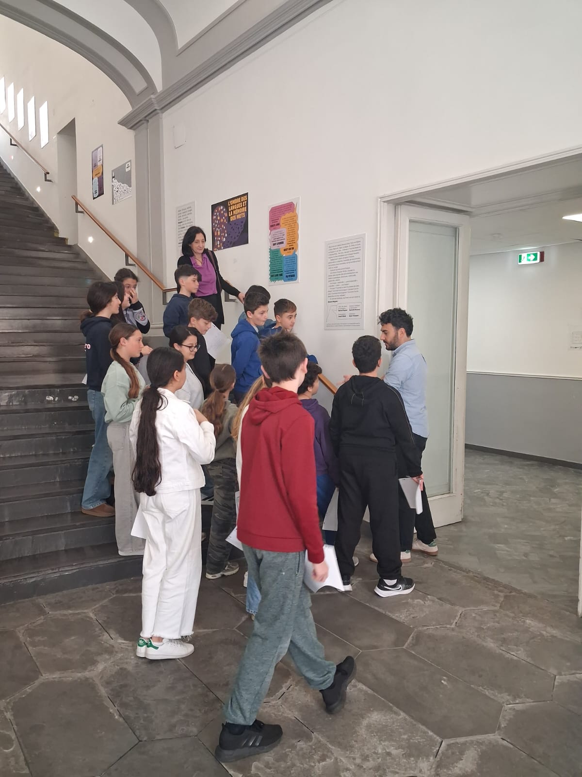 Le mercredi 15 avril, la classe de 6ème a franchi les portes de l’Institut Français de Naples pour une séance de français immersive. Au sein même du Palazzo Grenoble, nos élèves ont découvert l’exposition “Écrire en français”, une œuvre qui célèbre la diversité et la beauté de la langue.